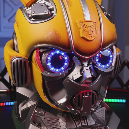 Step into the world of the Autobots with this highly detailed Bumblebee Helmet, featuring dual transformation modes, voice control, and light-reactive optics. Whether displayed on your shelf or worn for action, this helmet is engineered for fans who demand authenticity and innovation.